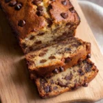 A moist and flavorful banana bread with rich chocolate chips, perfect for breakfast or as a snack.