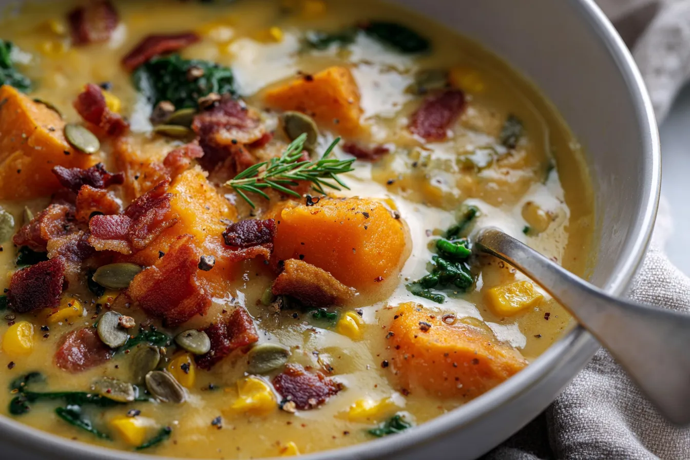 Indulge in our Cozy Sweet Potato Corn Chowder recipe today Warm your soul with this creamy flavorful dish perfect for chilly evenings