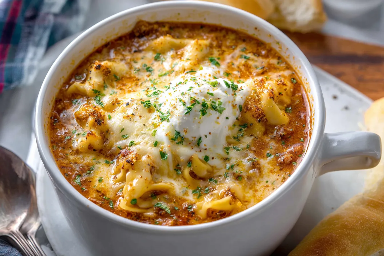 Indulge in creamy lasagna soup a comforting delight with decadent layers of flavor Perfect for cozy nights and satisfying cravings Enjoy every bite