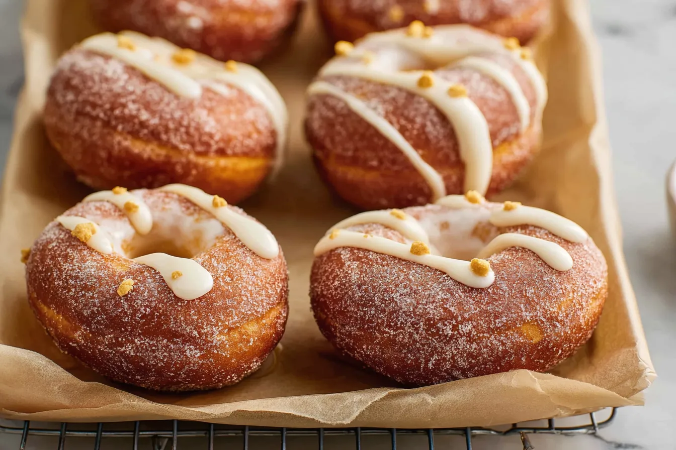 - Prepare Cream Cheese Glaze: While the doughnuts cool, beat together cream cheese, powdered sugar, vanilla extract, and milk until smooth and creamy.