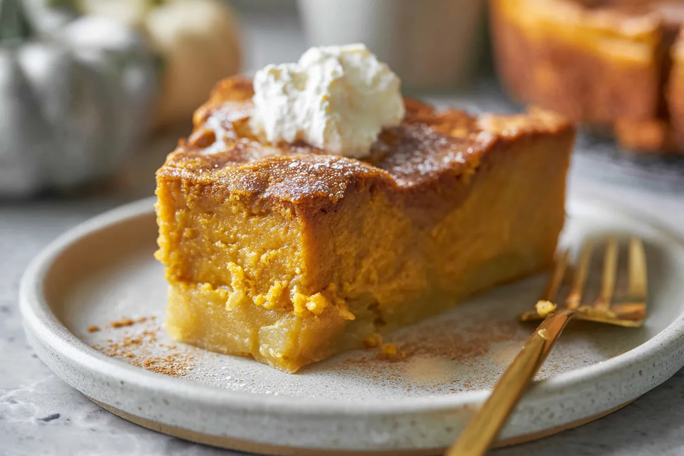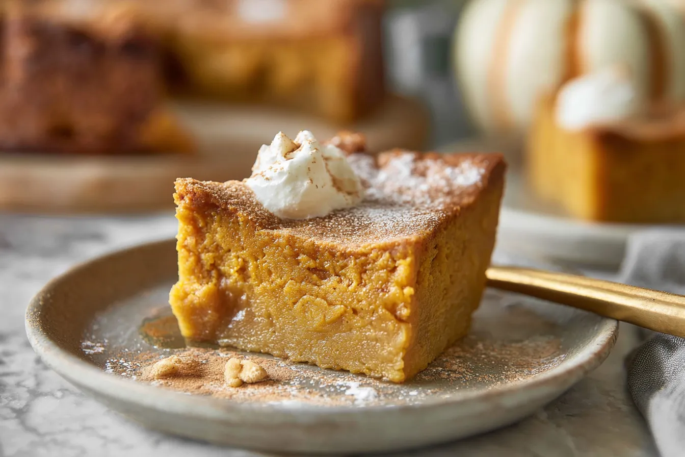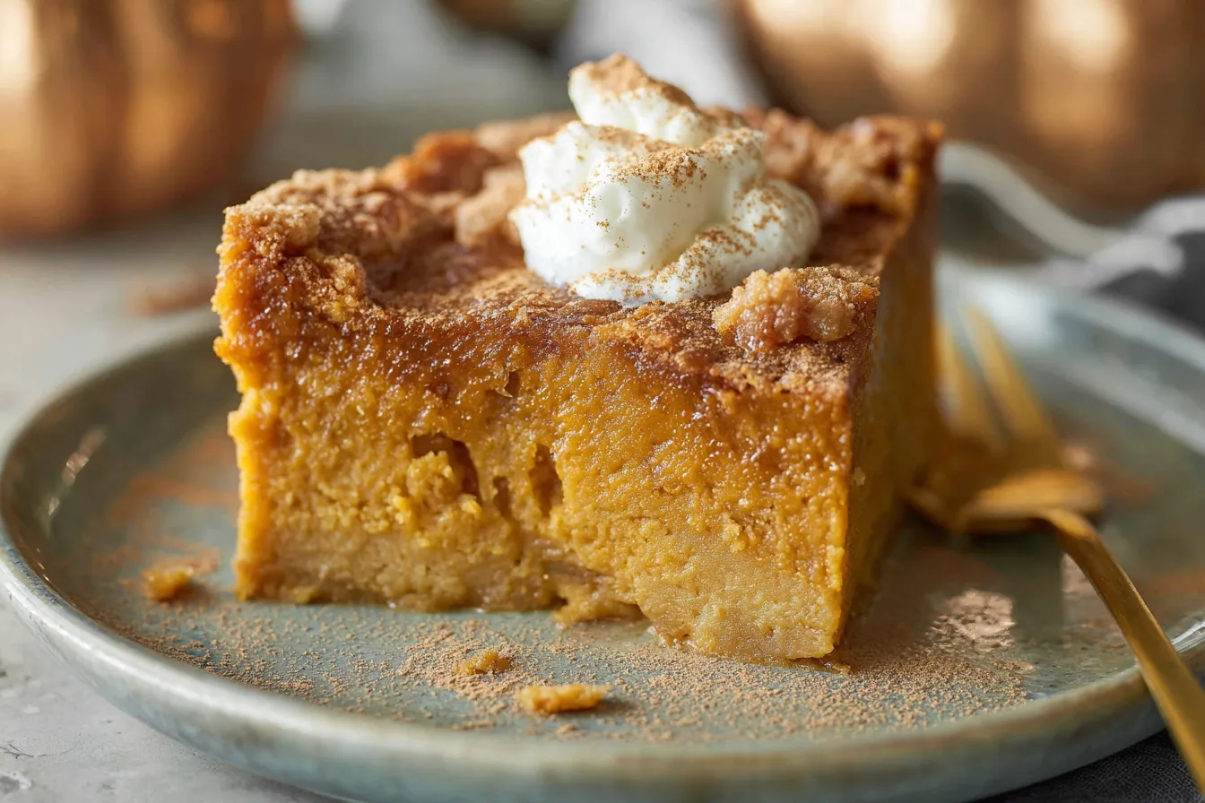 This cake strikes the ideal balance between ease and indulgence: a simple crust topped with a gooey pumpkin filling that’s almost custard-like. Moreover, it’s versatile enough to fit any occasion, from festive gatherings to after-school snacks. So, throw on your favorite sweater, grab your mixing bowl, and let’s dive into this pumpkin paradise!